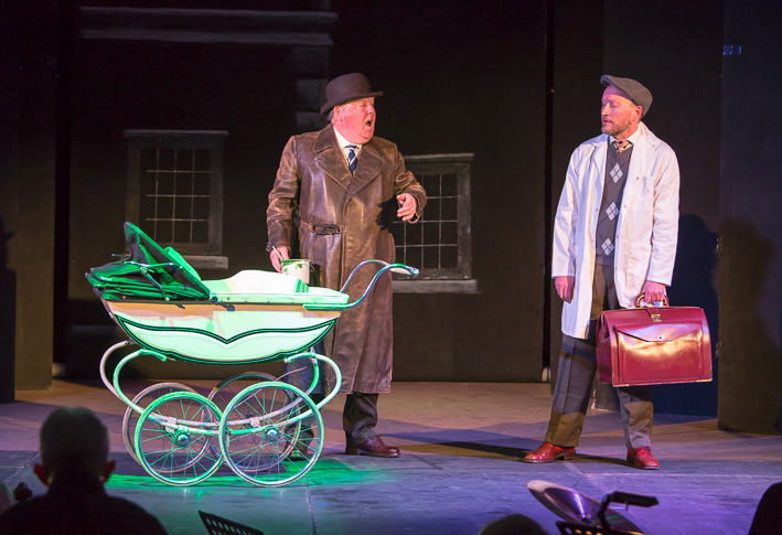 We made a temporary swerve into comedy in 2017. The Questors Theatre, Ealing, staged another World Coarse Acting Competition (based on the late Michael Green's book "The Art of Coarse Acting"), and we were invited to compete. Neil Edwards compressed "The Murder at Shakerley House" into a 15-minute mini operetta and choreographed it, with Richard Gaunt directing the "Coarse" bits. The evening, judged by Timothy West, was great fun, and to our surprise and delight, we won the coveted chamber pot trophy. Richard Gaunt, an ex-Questors actor, has been in the cast of four wins out of the five Coarse Acting championships staged at Ealing. Our entry was re-adapted by Neil into a longer piece and coupled with "Trial by Jury" for our 2018 show.